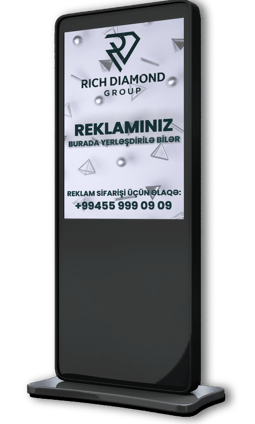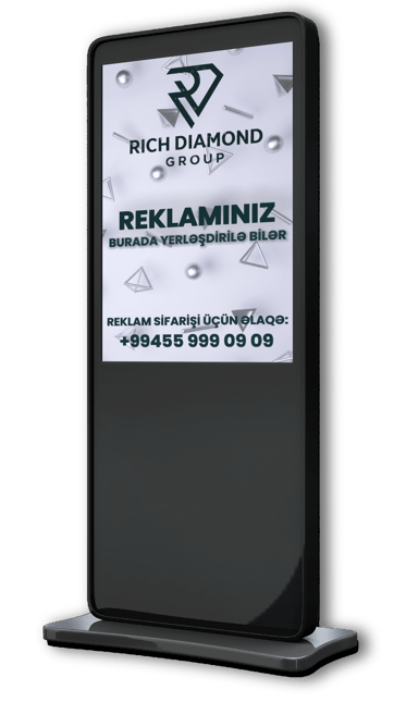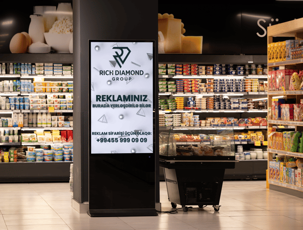 Rich Diamond Group reklam monitorları komandası – supermarketlər və digər pərakəndə satış məkanlarında rəqəmsal reklam sistemləri (monitorlar) vasitəsilə brendlərə və məhsullara effektiv reklam imkanları yaradan peşəkar bir komandadır. Missiyamız isə brendlərin mesajlarını alış nöqtəsində yəni müştərinin qərar verdiyi anda təsirli şəkildə çatdıraraq həm satışları artırmaq, həm də reklam effektivliyini yüksəltməkdir.